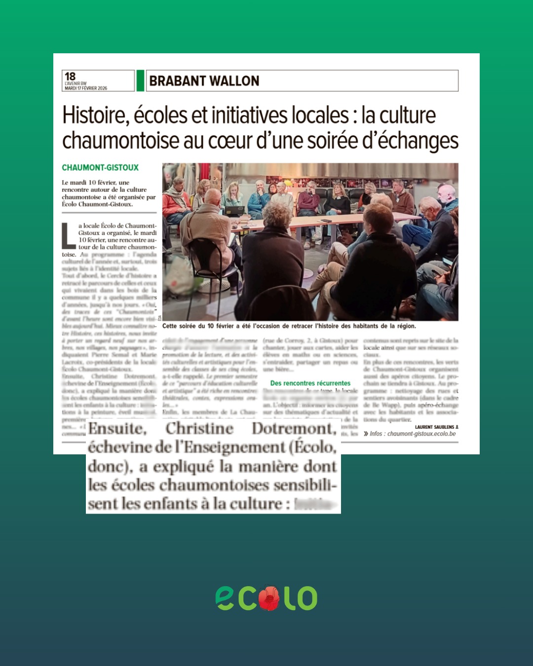 Rencontre ECOLO du 10 février 2026